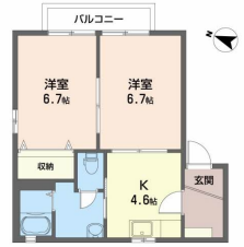 洋室6.7畳 洋室6.7畳 K4.6畳 |